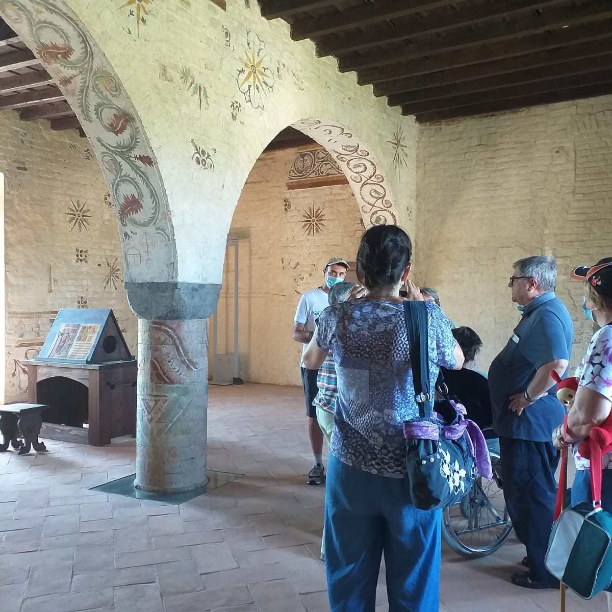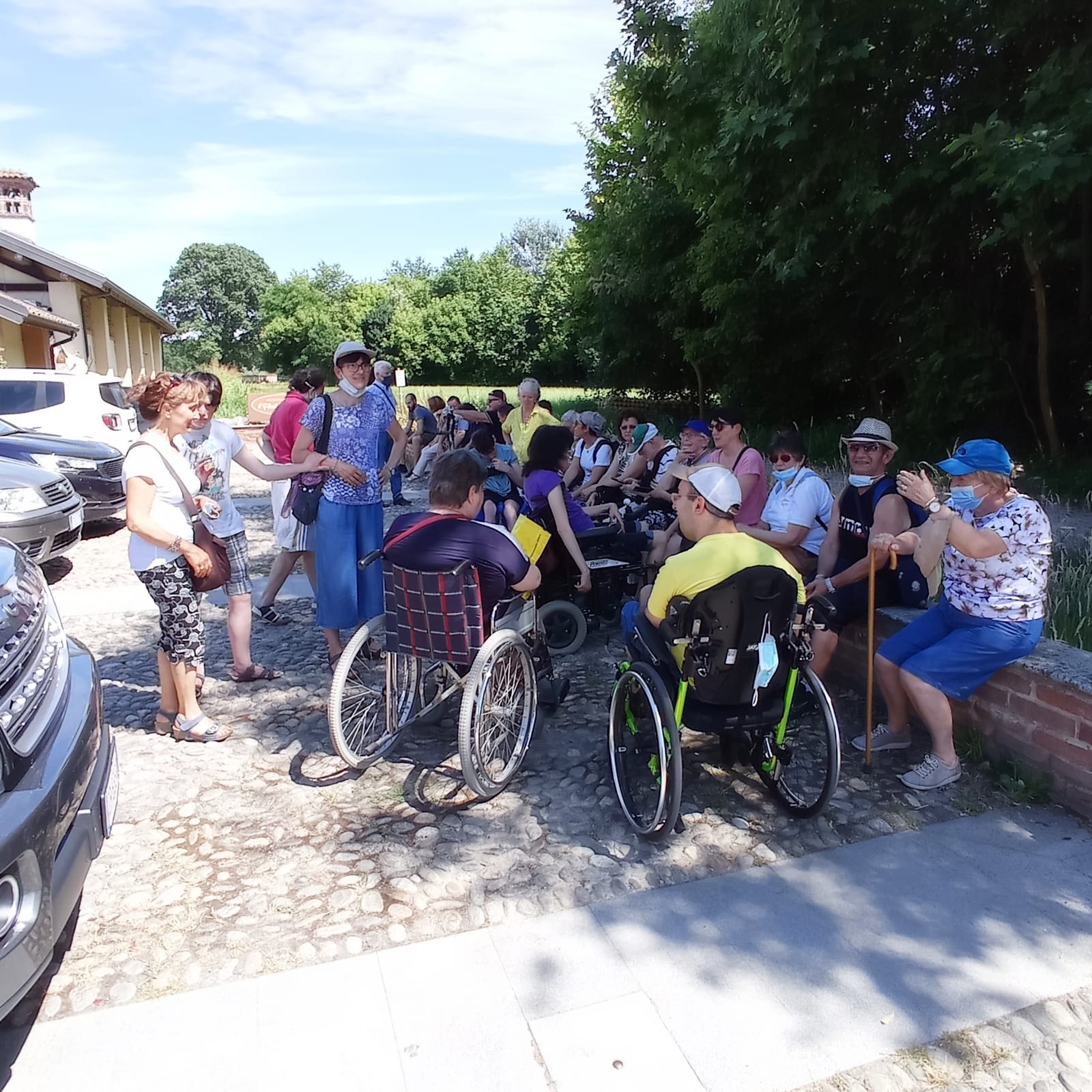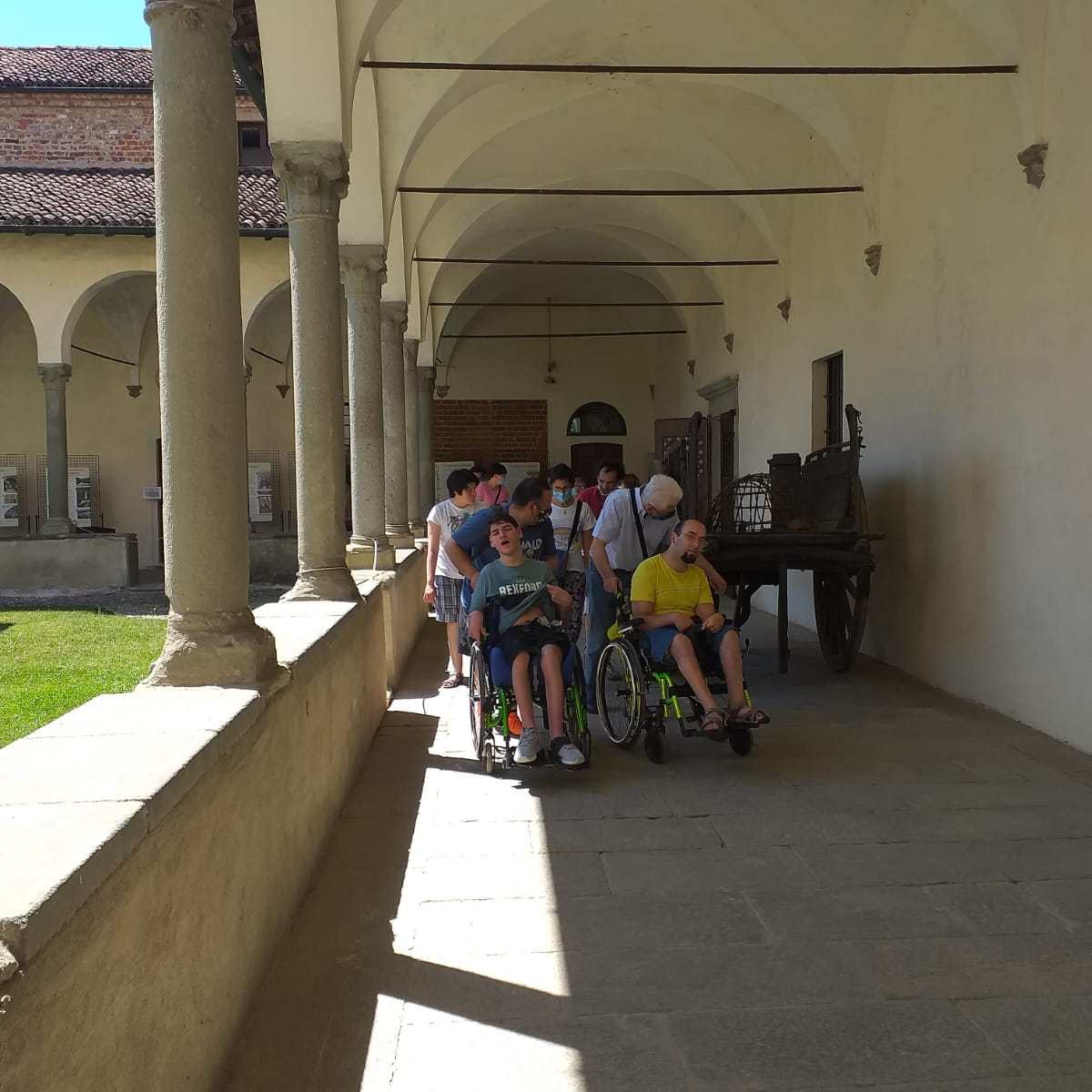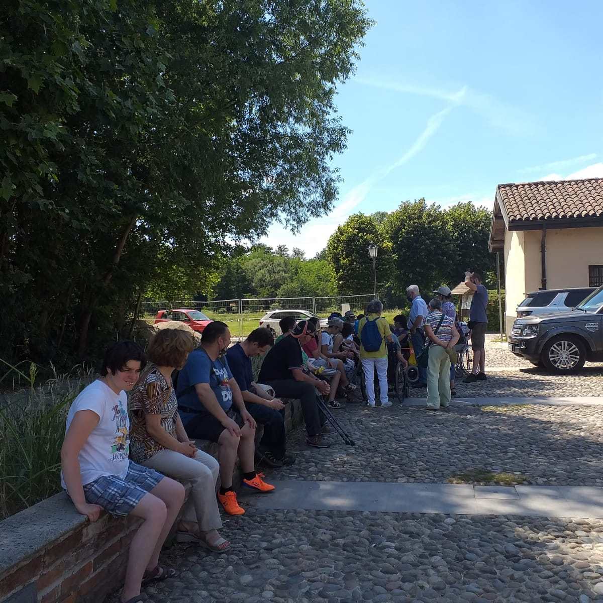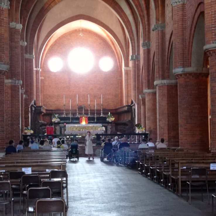 Finalmente sabato 26 giugno siamo andati in gita dopo due anni di “navigazione sforzata”. Non ci sembrava vero di tornare alla normalità, anzi siamo ritornati agli inizi. Con una carovana di macchine abbiamo raggiunto Morimondo dove ci attendeva a braccia aperte il nostro ex parroco Don Giancarlo. È stato molto bello passare del tempo con lui in un piccolo borgo a sud di Milano. Con una guida abbiamo visitato l’abazia e il chiosco di Morimondo. L’abazia appartiene alla chiesa Madre di Morimond in Francia. È un monastero cistercense, cioè legata alla vita monastica dei monaci che vivevano in clausura. Per capire l’architettura cistercense occorre considerarla come l’espressione della spiritualità dell’Ordine. Le abbazie cistercensi sono come libri aperti che aiutano ad elevare la mente in alto, ad incontrarlo nell’umiltà, nella semplicità, nella preghiera e nella conversione; la loro bellezza non deriva dalla ricchezza della decorazione o dalla preziosità dei materiali, ma dalla loro funzionalità ed essenzialità, dai rapporti geometrici, dal propagarsi della luce e del suono. Momenti semplici e umili come quelli passati insieme al nostro amico Don, con cui abbiamo condiviso un pranzo al sacco nel suo oratorio. Un piccolo angolo di paradiso sul colle del paese. Nel primo pomeriggio, dopo aver salutato calorosamente Don Giancarlo, abbiamo fatto un giro nei dintorni. Abbiamo così riscoperto la bellezza della natura, l’essenziale per vivere meglio tra la luce e il suono di un mondo rinato.