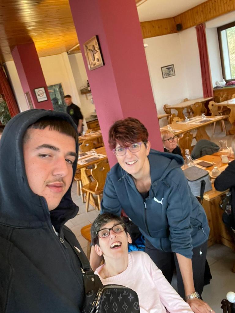 Appena arrivati, siamo andati subito con le gambe sotto il tavolo al ristorante “Casa della neve” dove abbiamo pranzato. Ci hanno accolti subito con gentilezza e ci hanno deliziato con l’antipasto a base di salumi, formaggi con creme speziate, cetrioli e cipolle sottolio. Come piatto unico abbiamo mangiato la polenta con lo spezzatino ed infine una deliziosa torta alle sfoglie con pesche, marmellata di pesche e caramello. Il dolce è stato straordinariamente accompagnato da cori alterni di “Quel mazzolin di fiori”, “Alla caccia del leon”, “Siamo tre cinesi” e “Toitela ti”. Dopo pranzo, le nuvole ci hanno permesso di vedere un po’ più in là e il nostro “orizzonte” ha potuto vedere solo il lago d’orta con l’isola di San Giulio e il lago maggiore. Dopo un giro di mezz’ora attorno alla vetta, i più coraggiosi sono andati sull’Alpyland: un slittino biposto, ricco di curve e dislivelli che ammira il Lago Maggiore dall’alto.