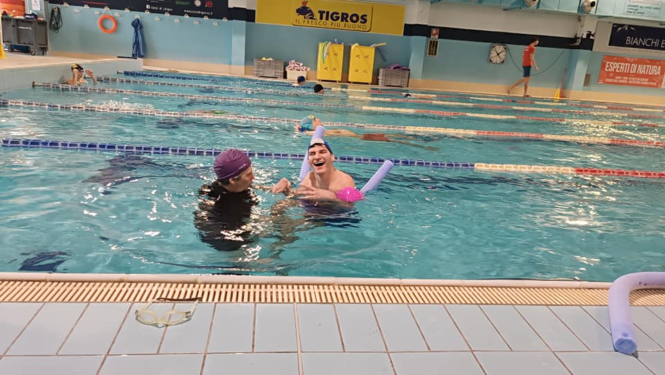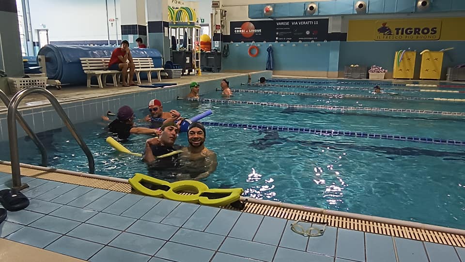 Domenica 21 Gennaio abbiamo ripreso la nostra attività acquatica. Ci ritroviamo due volte al mese presso la piscina l’Associazione Polisportiva Robur et Fides di Varese dalle 10.00 alle 12.00. Siamo un bel gruppo, anche se ci manca qualche volontario per aiutare i maschietti nello spogliatoio, capace di divertire e far divertire gli altri. In un’ora riusciamo a mettere in “acqua” un piccolo teatrino, scene senza titolo che diventano espressioni man mano del tutto naturali. Un tuffo, una andata e ritorno, uno scherzo e uno schizzo sono tutti modi per esprimere ciò che siamo. L’acqua ci riflette, mette in evidenzia le nostre difficoltà e le nostre potenzialità: ecco perché alcune volte anneghiamo qualcuno…ops..dopo una settimana pesante ci vuole! Scherzi a parte, l’attività della piscina è molto importante per il nostro gruppo, non potremo mai farne a meno perché l’acqua smuove la nostra passione!