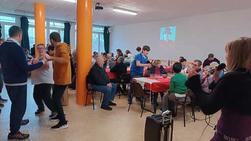 Feci tre o quattro scalette per poi camminare ancora…Passo dopo passo, arrivai a sentire un gran baccano. Davanti a me si presentò un grosso edificio, muscoloso e ben solido,a dire il vero mi faceva un pò paura. Sembrava un uomo con le braccia sui fianchi. Mi aspettava, sfidandomi… Allora mi avvicinai e a suon di campanellini, pian piano, con il mio sacco colmo di doni in punta di piedi, mi affacciai ad una finestra…era buia e fredda. Sbirciai in un’altra, era taciturna e colma di solitudine, eppure sentivo sempre più vicino quel baccano che si trasformava sempre più in chiacchiericcio e risa. Decisi allora di guardare in tutte le finestre possibili, giravo come una trottola, sì perchè Babbo Natale sa fare pure questo (se no, come lo spiegate che vengo dal Polo Nord e in una settimana riesco a portare i regali a tutti?) e dopo aver sbirciato in tutto l’edificio come un pazzo, feci una pausa. Pensai che forse avevo dimenticato qualche finestra. Scossi un attimo i campanellini del mio capello e… Perchè non ci avevo pensato prima! Perchè non ci avevo pensato prima! Esclamai con entusiasmo. Il semiterrato! Il semiterrato! - Manca Il semiterrato! Urlai con grinta. Così senza perdere tempo, mi sistemai la cintura sotto il panciotto, mi fondai nel semiterrato. Mi misi in ginocchio per guardare meglio attraverso una grata, quello che vidi era semplicemente straordinario: una luce immensa stava illuminando un gran salone addobbato a festa.